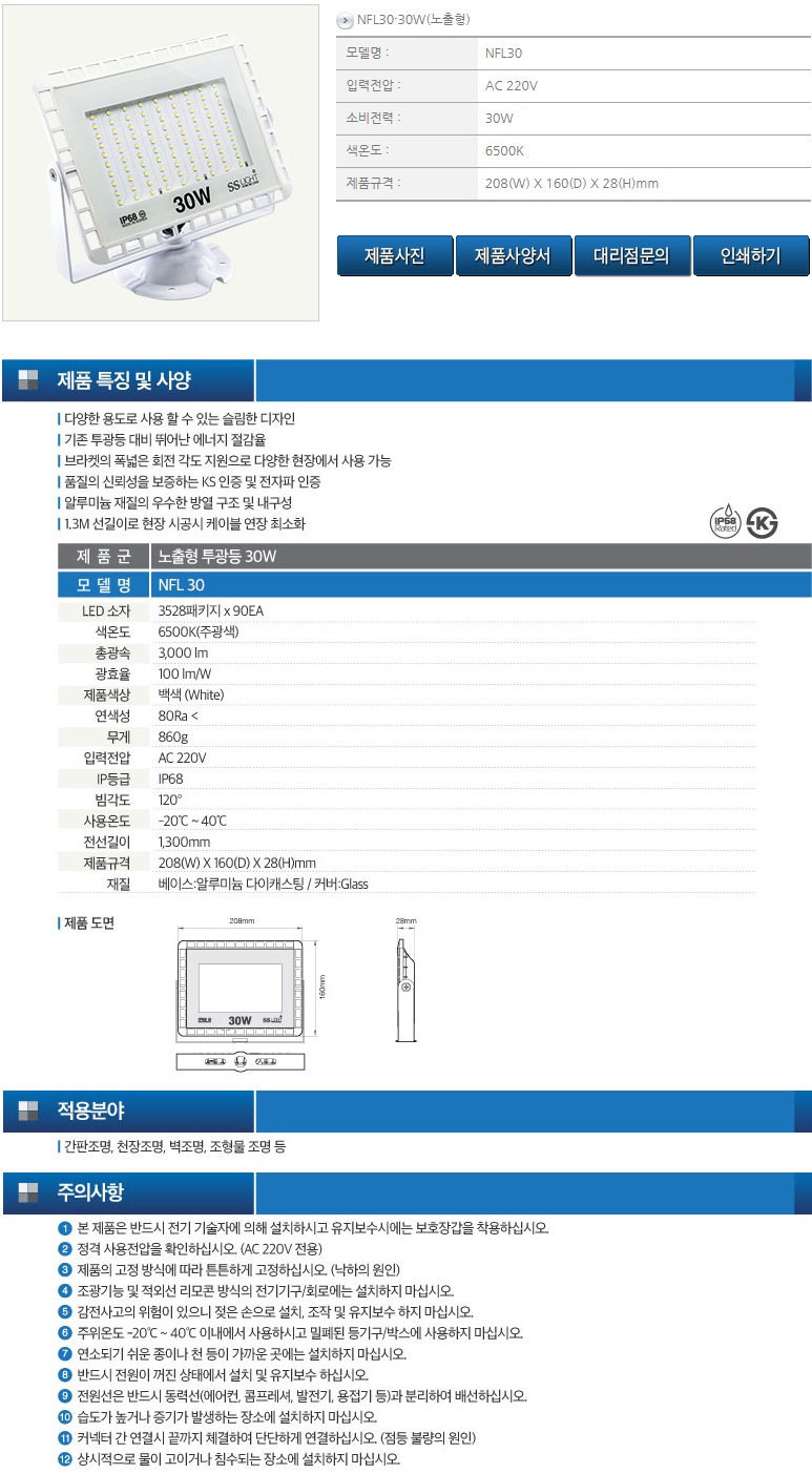 [SS] 국산 보급 투광등 NFL30 외장 (6.5K) 백색