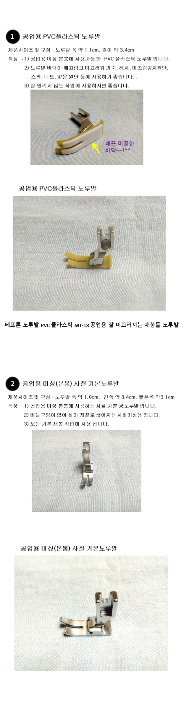 미싱자재/미싱용/미싱기발/미싱다리/금속노루발/도금노루발/pvc노루발/공업용노루발/현수막/원단미싱/