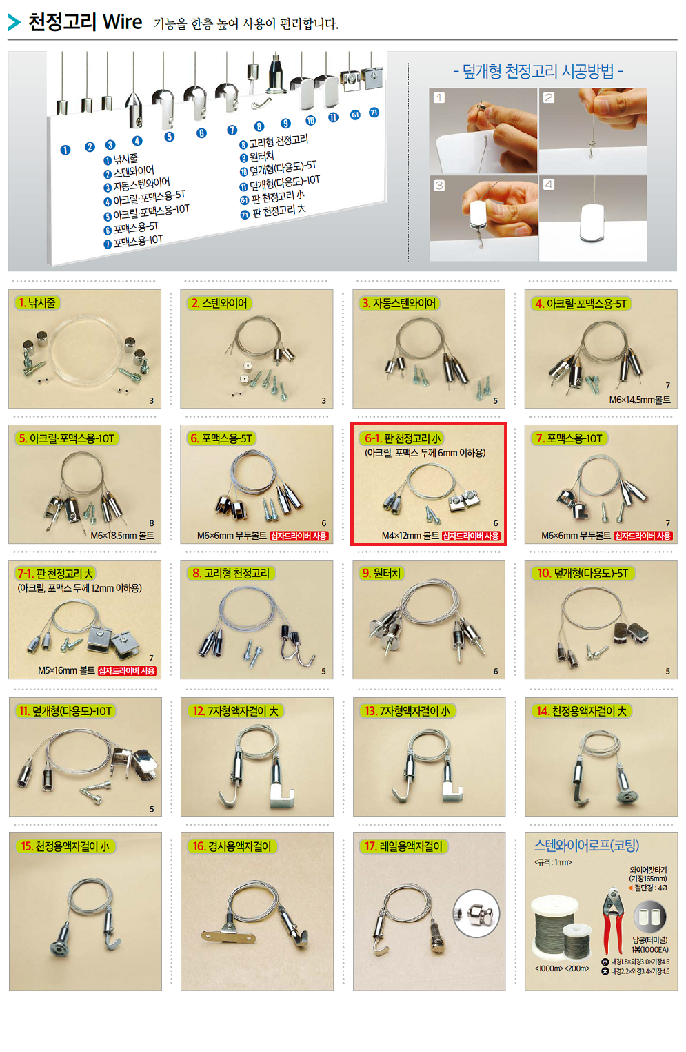 천정고리 천장고리 와이어 와이어로프