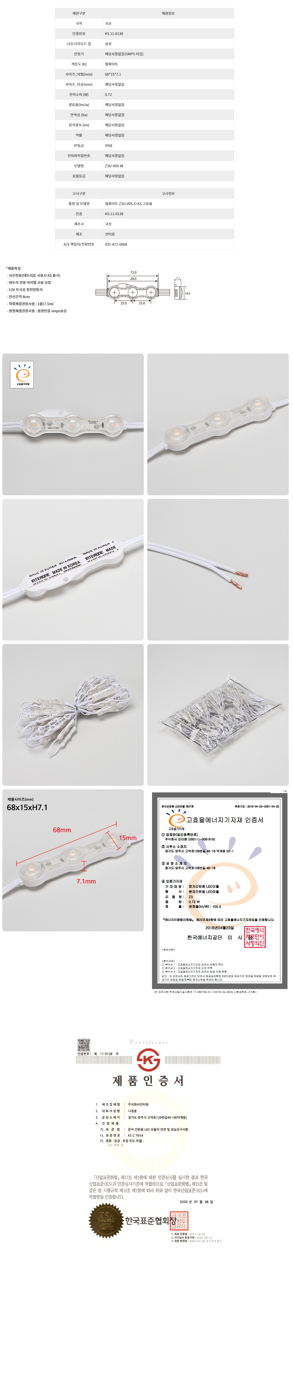 [인터원] 삼성칩 0.72W KS - 웜(3K) (50ea)