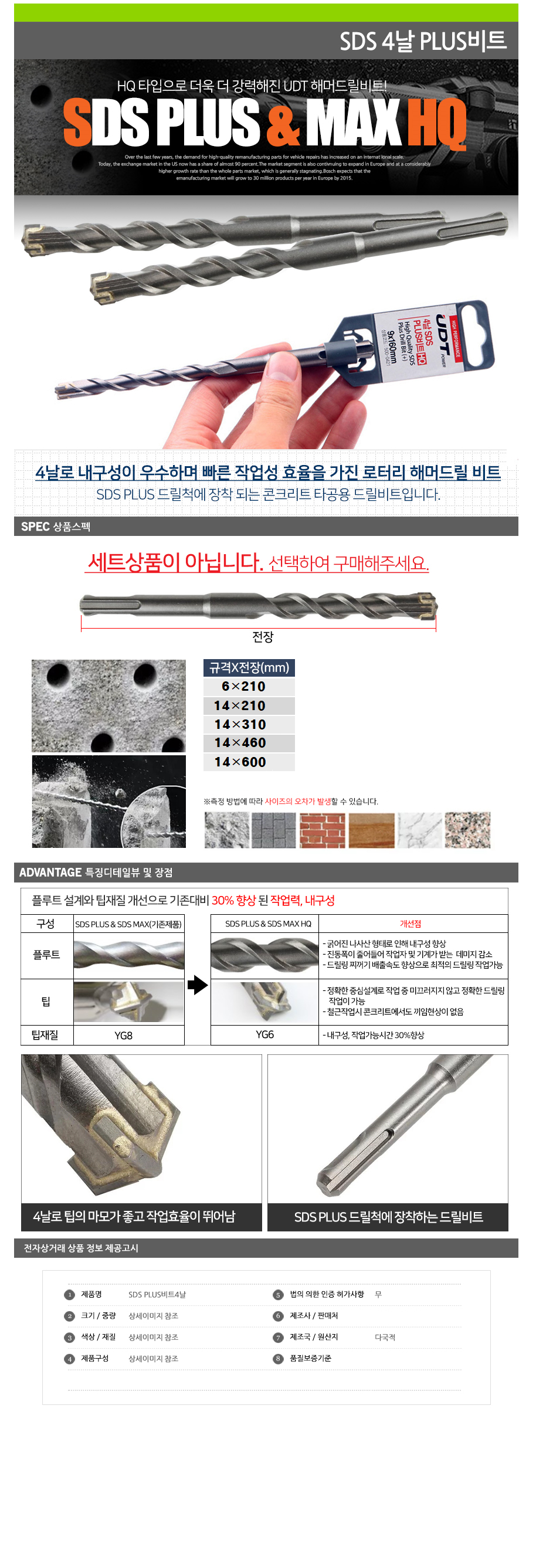 * HQ타입 : 플루크설계와 팁재질 개선으로 기존대비 30%향상된 작업력, 내구성